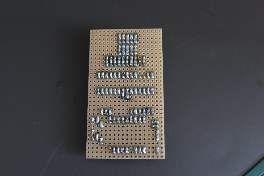 I wanted the project to be done soon and not waiting for a PCB nor made one, so I decided for a prototype board. It was also not too complex so let’s go old-school with it.
