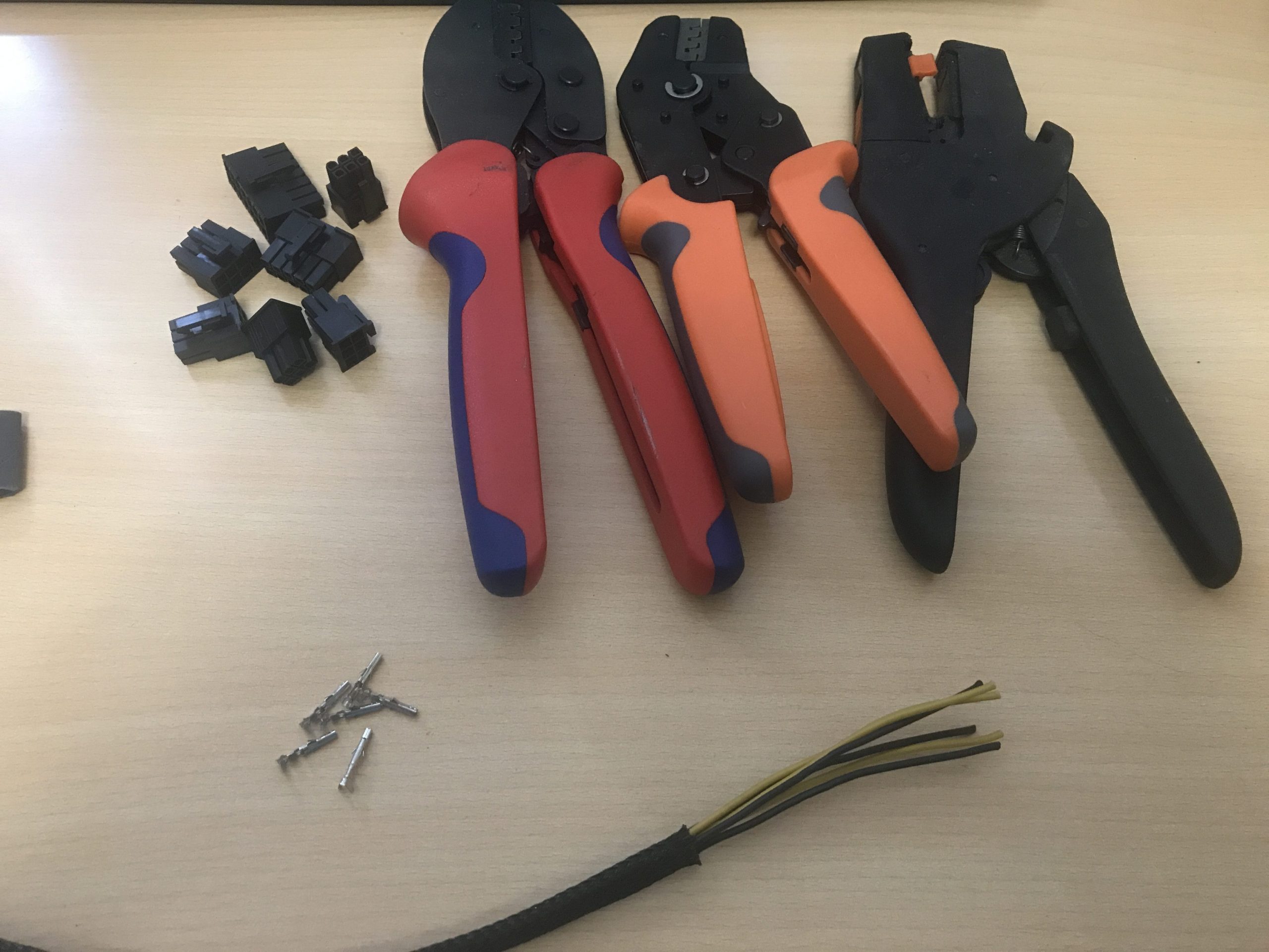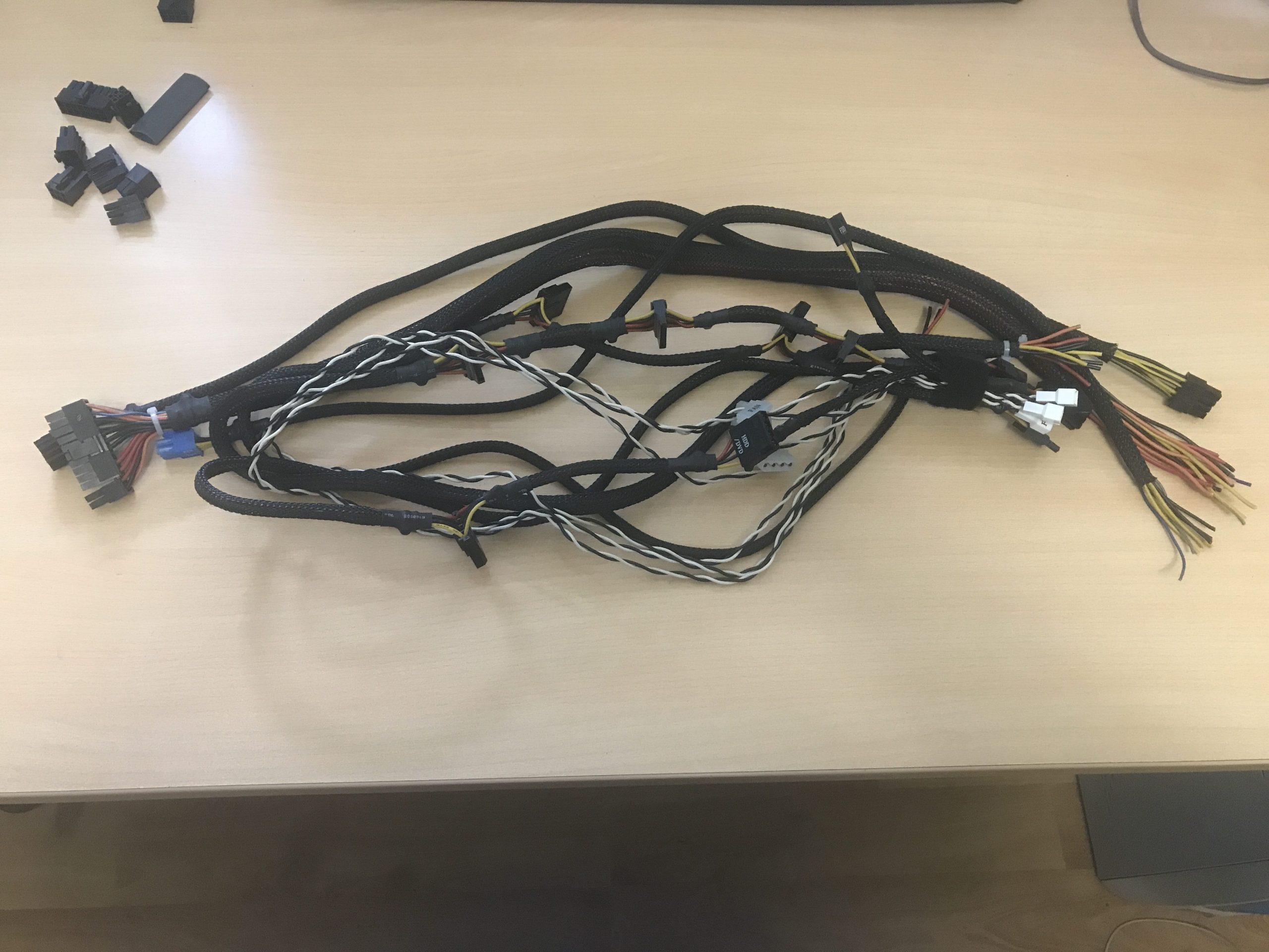 I had a donor harness from a be Quiet! PSU that didn’t have cable management. The challenge (no, it was not) was to crimp new connectors onto these cables and adapt them to work with the Corsair power supply.